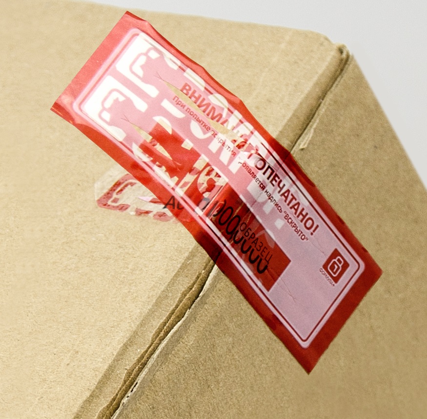 оставляет следы на объекте опломбирования и наклейке ("ВСКРЫТО") + разрушение ленты из-за специальных насечек